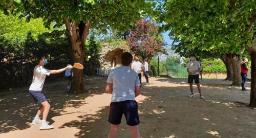 Hemos pensado en deportes que nos permitan utilizar materiales individuales y hemos apostado por deportes como la pala cántabra, tenis de mesa, bádminton o cuerdas. Nos hemos reinventado y hemos transformado las clases en talleres donde creamos nuestros propios materiales. Los profesores de Arts se han unido al proyecto y trabajando de forma interdisciplinar nos hemos convertido en expertos creadores de pelotas de malabares y palos de lacrosse.