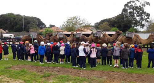 Nada más llegar los monitores que eran muy simpáticos, nos separaron en tres grupos y cada uno a su tarea: granjeros expertos para dar de comer a los animales, aprender sus características y cuidados. Jinetes de caballos y burros dirigidos por nuestros compañeros. Y lo más sorprendente, montar en dromedario y paseo por el valle disfrutando de más animales en libertad. ¡Fuimos unos valientes! nadie se quedó sin subir a unos cuantos metros de altura, eso sí, bien sujetos con el cinturón, menudo balanceo llevábamos, que risa nos daba.