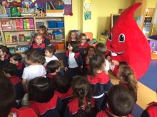 Las clases de 4 años estamos realizando un proyecto sobre el cuerpo humano y la doctora Cristina Amunarriz, mamá de tres alumnas del cole, nos ha explicado muchísimas cosas interesantes sobre la sangre. Cuáles son sus componentes, dónde se fabrica, para qué sirven los glóbulos rojos, los glóbulos blancos y las plaquetas. Que la sangre tiene nombre (0, A, B, AB) y apellidos (positivo o negativo) y que la sangre 0 negativo es la “sangre vip” porque puede donar a todo el mundo.