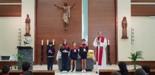 Soy MarySol y hoy he acompañado a los niños de 5º a la iglesia. Hemos participado y celebrado juntos una Eucaristía, en la que se ha puesto como plato fuerte, la JUSTICIA estando siempre muy atentos para descubrir lo que pasa a nuestro alrededor. Hemos rezado, leído y cantado todos juntos y he aprendido un montón.